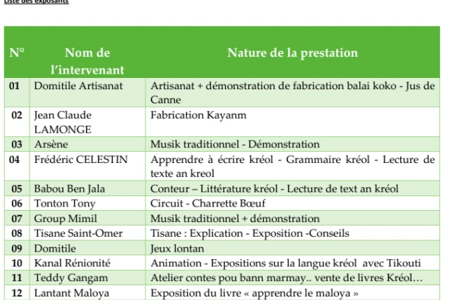 Des expositions sur la lang kréol avec la participation de l’association Tikouti .