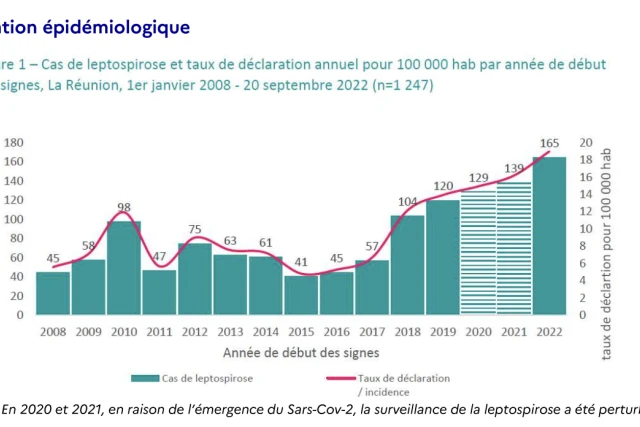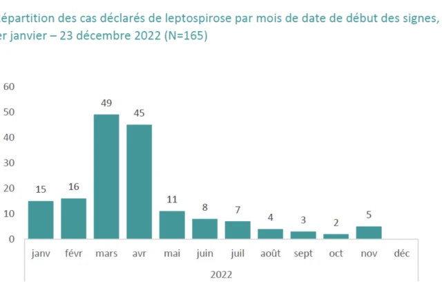 - 165 cas de leptospirose déclarés en 2022, contre 139 signalements en 2021 et 129 en 2020,