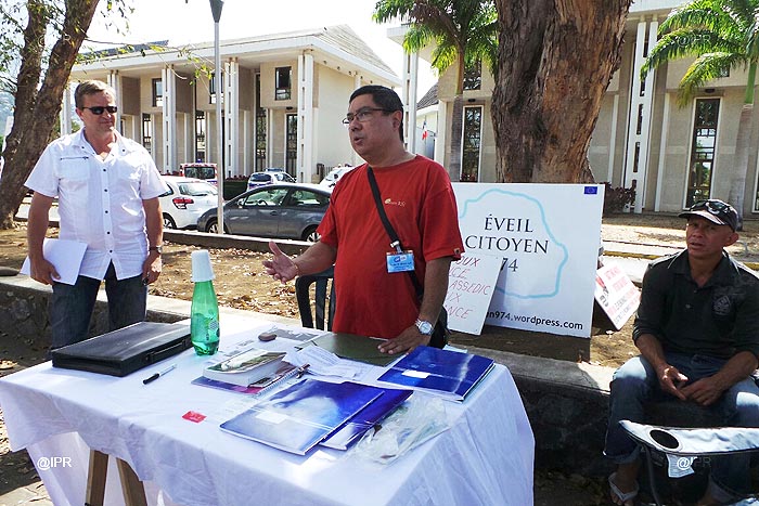 Installés devant le palais de justice de Champ Fleuri à Saint-Denis ce mercredi 9 octobre 2013, les membres du collectif Éveil Citoyens 974 ont reçu dans l'après-midi la visite du coordinateur Outre-mers et Étranger d'Anticor, Daniel Chane-Law. Actuellement à La Réunion, ce dernier est ainsi venu annoncer "officiellement" le soutien d'Anticor dans leur combat. "Vous n'en êtes qu'au début. Ce sera long mais je suis là pour vous donner espoir", a-t-il lancé.