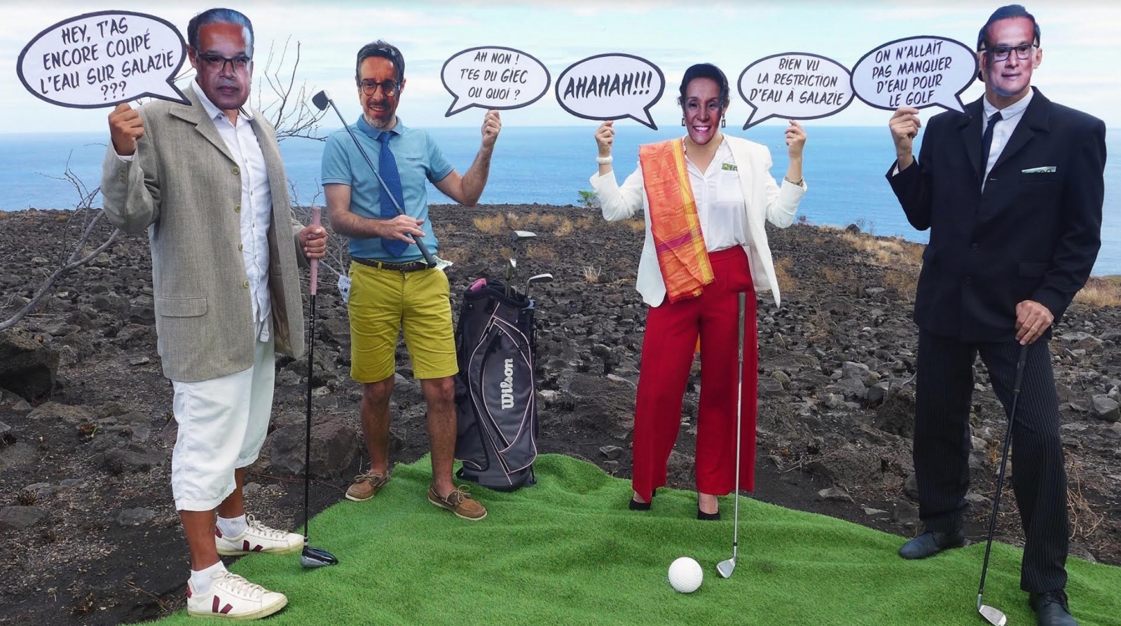 Ce vendredi 10 novembre 2023, le collectif Domoun Dolo, Extinction Rebellion et Greenpeace La Réunion, ont mené une action pour réagir aux restrictions d'usage de l'eau récemment annoncées par le préfet. Les principaux responsables du territoire, à savoir la présidente de Région, le Président du département, le Préfet et le maire de Bras Panon, ont été représentés sur des photos en train de jouer au golf, sur les terres brulées du Cap Lahoussaye, pour dénoncer "le soutien à cette industrie de loisir qui consomme des quantités d'eau astronomique à l'heure des pénuries". Nous publions le communiqué ci-dessous.