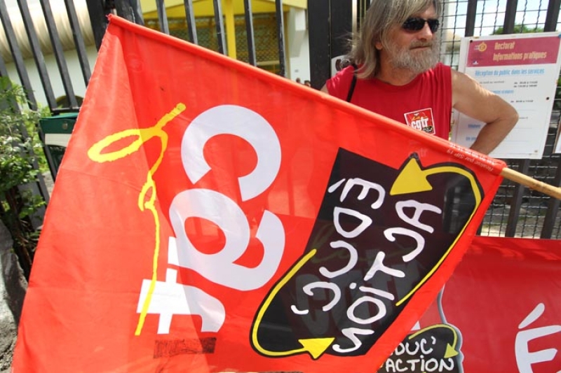 Ce mardi 31 janvier 2012, les personnels de l'Education nationale étaient appelés à la grève. A La Réunion, la mobilisation a eu un faible écho dans les établissements, mais quelques manifestants ont tout de même répondu à l'appel de l'intersyndicale (FO Enseignement, CGTR Educ'Action, SAIPER PAS 974, SNE-CSEN, SCENRAC-CFTC). Ils étaient une cinquantaine ce matin devant les grilles fermées du Rectorat à Saint-Denis pour faire entendre leur "colère" et leur "révolte" face aux suppressions de postes dans l'académie. "En deux ans, 312 postes ont été supprimés à La Réunion, ce qui génère des fermetures de classes et des classes surchargées, alors que le département connaît des retards structurels par rapport à la métropole", rappelle Patrick Corré, secrétaire général de la CGTR Educ'Action.