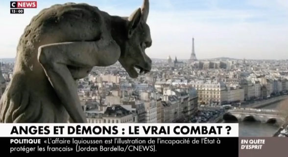 Dans son émission "En quête d'esprit" du dimanche 2 octobre 2022, CNews a diffusé un reportage intitulé "Anges et démons : le vrai combat ?". Les journalistes - présentateurs ont ainsi proposé de voir l'actualité sous un angle "plus spirituel" : "C'est une réalité plus sournoise que tous les virus et les épidémies, plus contagieuse aussi que toutes les infections mais on en parle rarement et elle est encore moins prise au sérieuse, ce sont les forces du mal", a édicté le présentateur. "Elles étendent leur pouvoir dans toutes les sphères de la société pour nous mener au désespoir", a-t-il ajouté avant d'asséner : "l'actualité le démontre amplement". Vous ne nous croyez pas ? Regardez par vous-mêmes