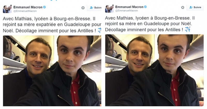 Heureusement que les "screenshots" existent. Sinon, ce tweet d’Emmanuel Macron serait peut-être tombé dans l’oubli. Tout à sa joie d’accompagner un lycéen ultramarin dans un avion direction la Guadeloupe, le candidat à la présidentielle en a totalement oublié ses connaissances géographiques et historiques. D’où cette phrase remplie de bonnes intentions : "Avec Mathias, lycéen à Bourg-en-Bresse. Il rejoint sa mère expatriée en Guadeloupe pour Noël. Décollage imminent pour les Antilles !". Sauf que les Antilles, c’est la France aussi.