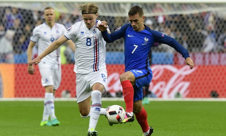 00h36 : Très belle défense islandaise qui contre l'échange Griezmann-Payet.