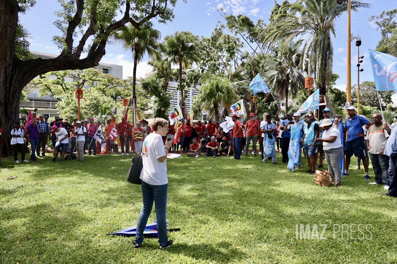 À 10 heures, une centaine de personnes étaient réunies dans le Jardin de la liberté, devant la préfecture de Saint-Denis. L’UNSA, la CGTR, Solidaires, SUD Solidaires, FSU, SNES-FSU, Saiper sont mobilisés pour défendre le service public et dénoncer les conditions de travail de plus en plus difficiles.