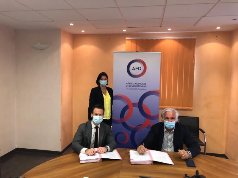Le Président de la Fondation Père Favron, Monsieur Jean-Louis CARRERE et le Directeur du Département des Trois Océans de l’Agence Française de Développement (AFD), Monsieur Charles TROTTMANN, ont signé ce mardi 24 novembre 2020, une convention de prêt de 20 millions d’euros.