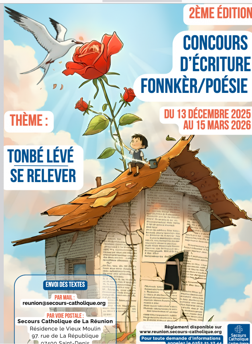Le Secours Catholique lance la seconde édition de son concours d’écriture Fonnkèr /Poésie. Le concours restera ouvert jusqu’au 15 mars 2026 inclus. Cette nouvelle édition invite le public à s’exprimer autour du thème "Tonbé lévé" / "Se relever", un sujet qui interroge la capacité de chacun à se relever face aux épreuves de la vie (Photo : rb/www.imazpress.com)