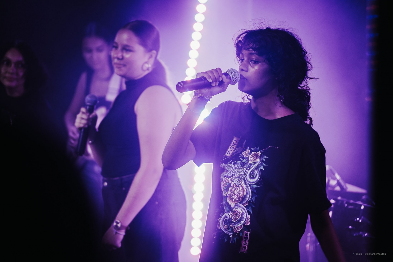 Après des tonnerres d’applaudissements, la scène a ensuite accueilli la talentueuse Mado Hoarau, dont la voix douce et intense a transporté le public bien au-delà des côtes sauvages de Piton Sainte-Rose où elle vit est est élève de 4ème au Collège Thérésien Cadet. Avec ses interprétations de "Corps" d'Yseult, "Veli" de Maya Kamaty" et sa propre composition, "Ti zwazo" a cappella sur un texte de son père Jean-Yves Hoareau, fonkézèr bien connu des spectateurs du Bisik, la jeune fille a fait trembler les corps et les cœurs… Une mention spéciale pour toutes ces émotions partagées… Nous espérons la revoir bientôt lors de nos soirées (K)ozé…