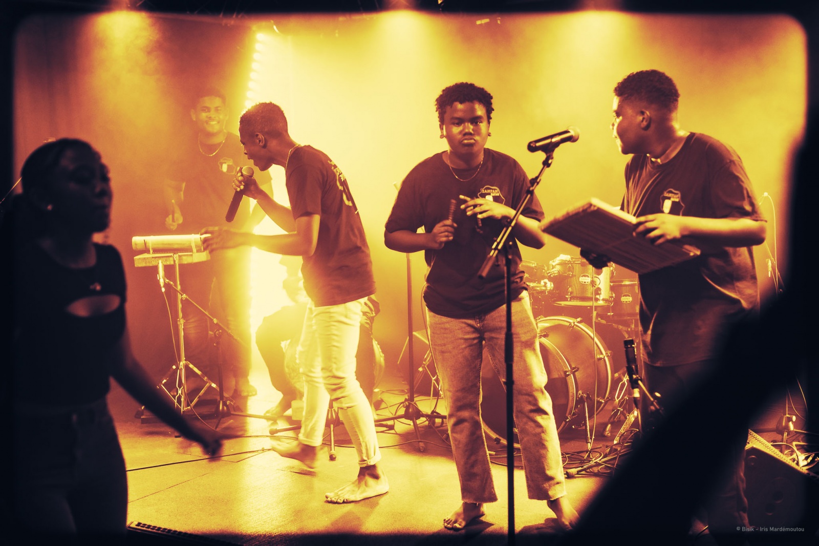 Le groupe Zanfan Gayar, groupe de maloya bénédictin composé d’élèves du Collège Bouvet et entraînés par Adriana Françoise, professeure référente culture de l’établissement mais aussi par Tifrid et Richelin Mahano, a ensuite pris le relais, renversant le public avec leurs trois compositions originales "Dan La kaz", "Kantie Maloya" et "Maloya tradisiyon". Le groupe, composé de Lorik Tugar au chant, Isimira-Thomas Manatsoa au kayanm, Madia Noha au roulèr, François-Luc Vitry au piker et Mahel Techer au triangle, s'engage activement dans la promotion de la culture et de la musique réunionnaise et a proposé un final inattendu, une ode au Bisik a cappella.