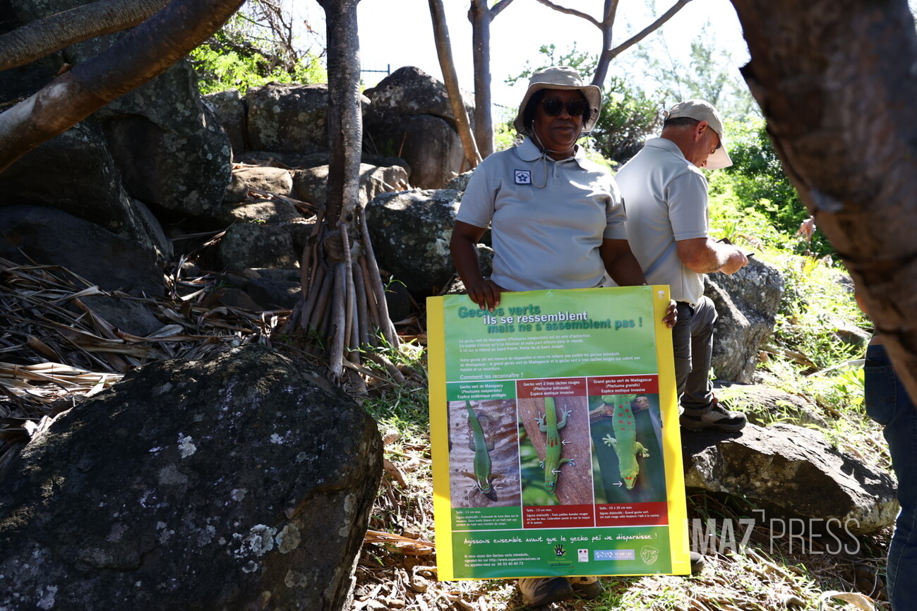 L’Agence régionale de la Biodiversité de La Réunion (ARB Réunion) organisait ce jeudi 27 mars 2025, une visite de Bassin 18 à Saint-Pierre. Une découverte majeure y a été faite : la présence de Phelsuma inexpectata, le gecko de Manapany, une espèce rare, endémique et emblématique de La Réunion. (Photos : yanou/www.imazpress.com)