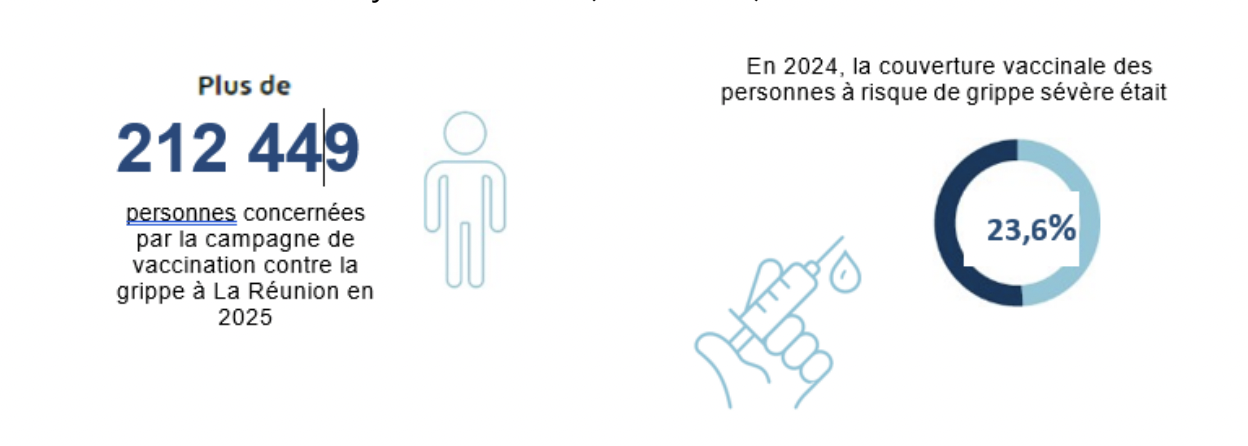 • Une couverture vaccinale en baisse (23,6% en 2024 contre 27% en 2023), et toujours très en-dessous de la moyenne nationale (environ 50%).