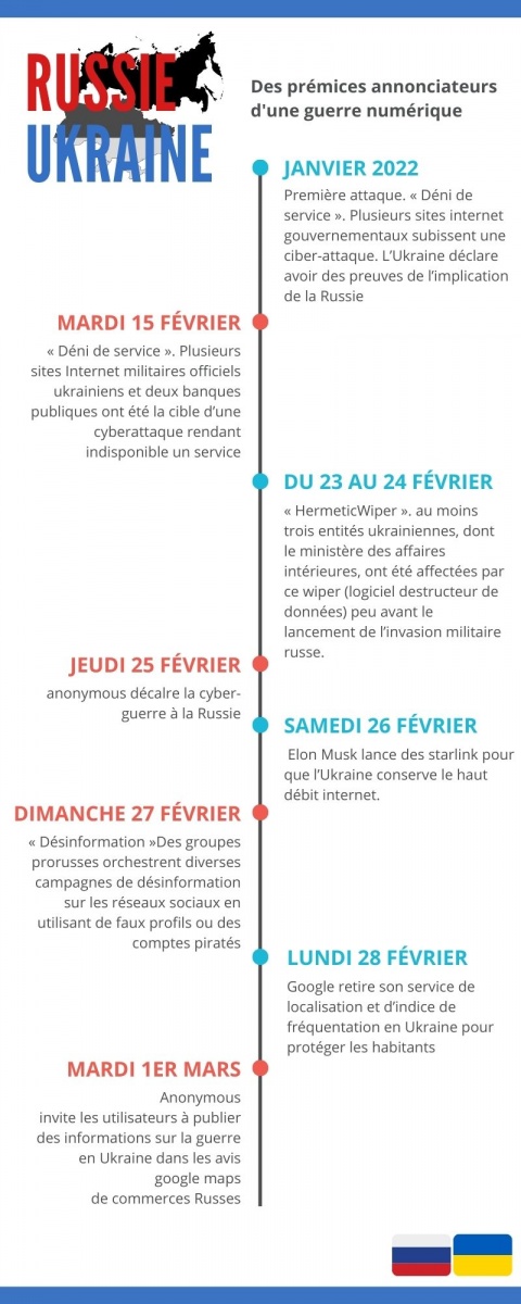 "Il est possible de dire que la guerre numérique a débuté avant l’invasion de l’Ukraine. Des attaques ont été constatées en janvier voire même en décembre. Nous avions alors les prémices de cette guerre, mais aucune information ne permettait de corréler l’action numérique et la mise en œuvre de manœuvres militaires sur le terrain", indique l'enseignante à l'école de Guerre Économique