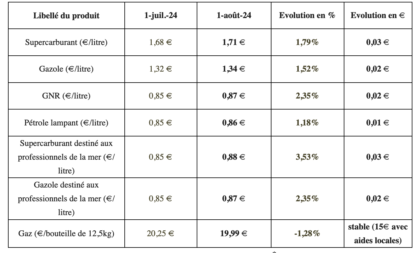 "La diminution du fret, le renforcement de l’euro et la baisse de certains coûts locaux minorent ces augmentations d’environ 1 centime par carburant" dit encore la préfecture.