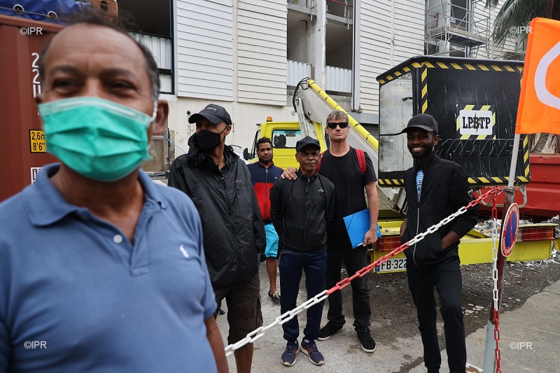 Les salariés en charge de la rénovation de l'hôtel de Saint-Denis sont en grève ce mardi 27 octobre 2020. Ils n'ont toujours pas reçu leur salaire pour le mois de septembre, alors que la paye tombe normalement dès le 26 du mois. En attendant que l'entreprise leur donne une solution au problème, ils se mobilisent devant le chantier, à l'appel de la CFDT BTP. (Photo rb/www.ipreunion.com)