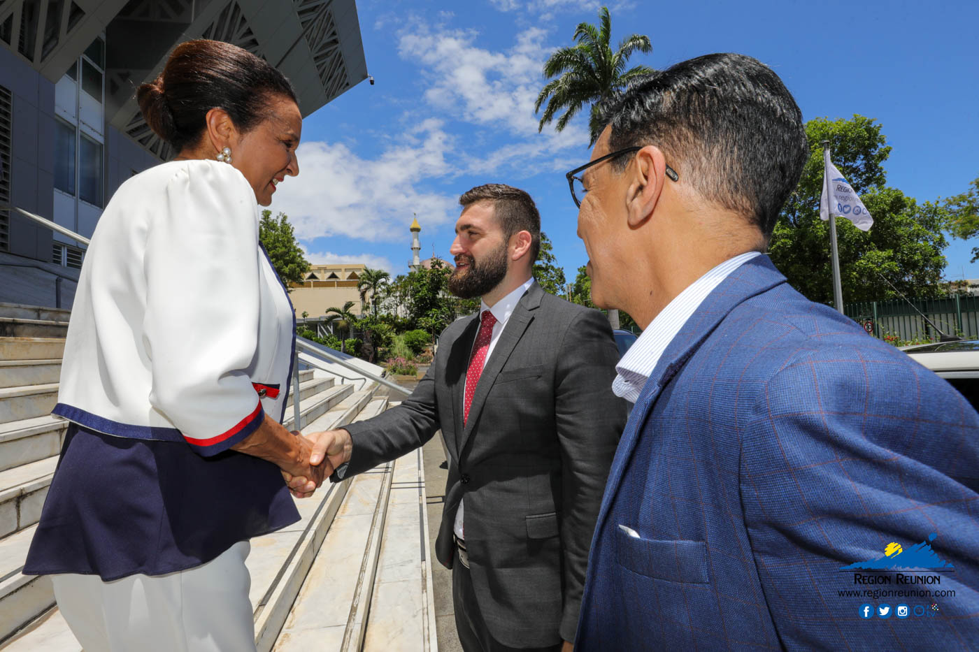 Ce mardi 10 janvier 2023, La Présidente de Région, Huguette Bello, a rencontré les députés européens, Andrey Novakov et Younous Omarjee. Cette rencontre a permis d'échanger sur la place de La Réunion au sein de l’Union Européenne. L'eurodéputé et homme politique bulgare, Andrey Nokakov est membre de la commission du développement régional présidé par le Réunionnais Younous Omarjee. (Photo : Région Réunion)