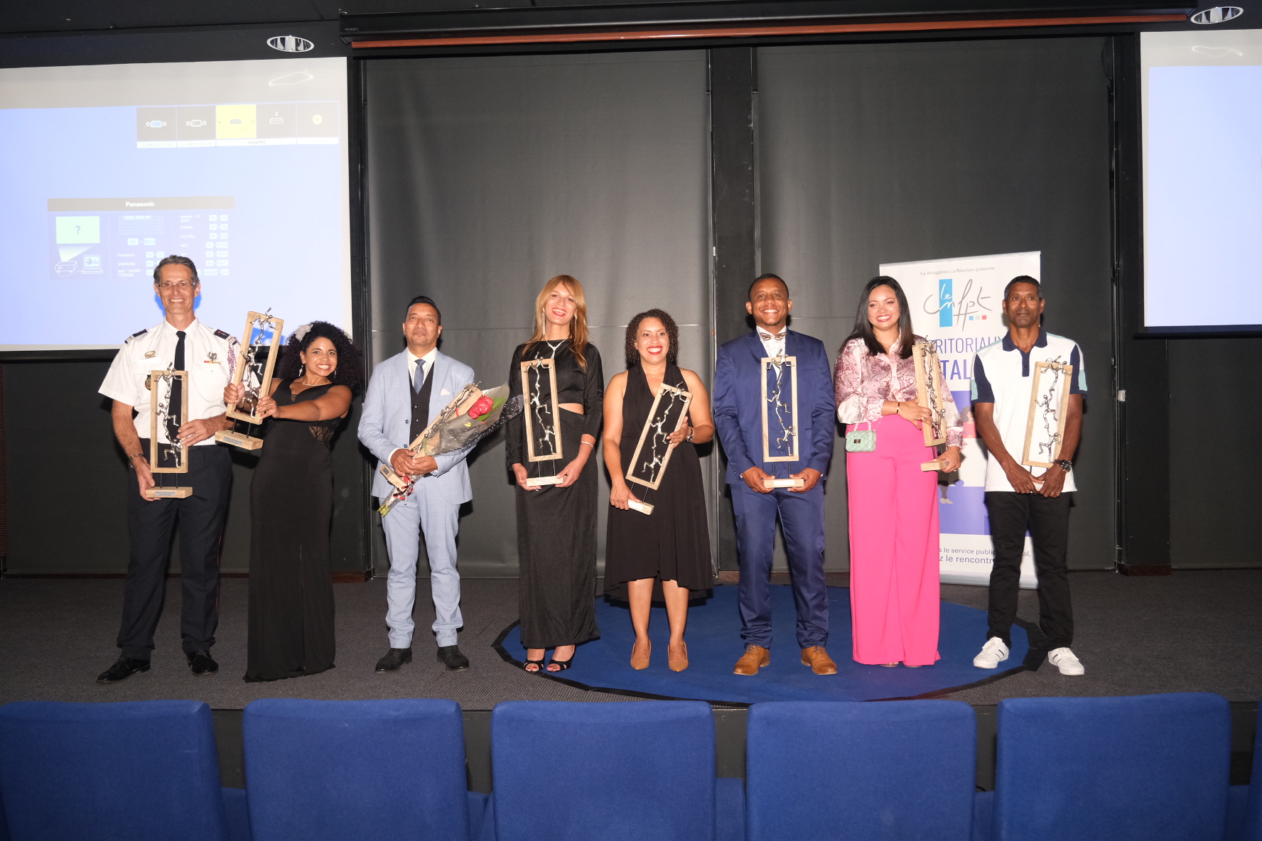 Ce projet innovant a donné un visage, une voix à celles et ceux qui œuvrent au quotidien pour le service public local à La Réunion. La délégation du CNFPT tient ici à féliciter les lauréats et leur collectivité, à remercier le public présent, ainsi que ses partenaires pour leur contribution à cette soirée mémorable. Pour rappel, ils étaient 30 au départ et ils étaient 8 ce vendredi soir !