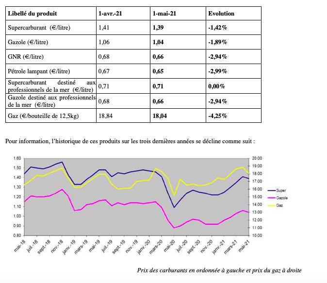 En conséquence, les prix des produits pétroliers et gaziers de La Réunion s’établissent de la façon suivante au 1er mai 2021 :