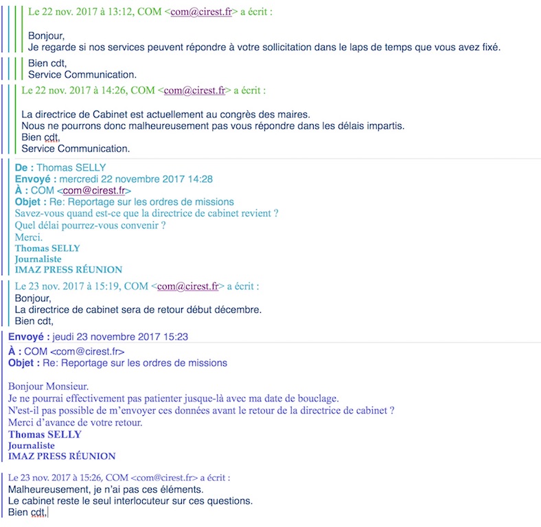 Le service communication de la CIREST nous renvoyait au retour de la directrice de cabinet, partie au Congrès des maires. Mais nous ne pouvions patienter jusqu’à son retour de métropole fixé début décembre.