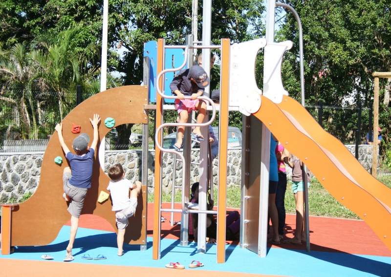Ce samedi 14 juin 2014, trois nouvelles aires de jeux ont été inaugurées à Saint-Philippe. Jeux à ressort, balançoires et autres tourniquets attendent désormais les enfants dans les quartiers du Tremblet et de Mare-Longue. L'aire de jeux de Ravine Ango sera également équipée d'un terrain multisupports. Les travaux, financés par la commune et la région, ont coûté plus de 550 000 euros. "Les parents étaient inquiets de voir leurs enfants jouer sur des portions de routes où des véhicules circulent en continu. Ces quartiers peuvent désormais bénéficier d'un espace de détente et de loisirs où les enfants pourront jouer et s'épanouir en toute sécurité", a déclaré le maire Olivier Rivière lors de l'inauguration. (photos D.R.)