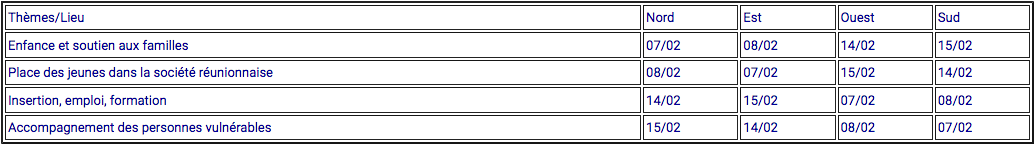 Animés par l’institut régional du travail social (IRTS), ces ateliers de concertation associeront les habitants, les associations, les acteurs institutionnels et des experts indépendants à des temps de travail sur 4 thématiques permettant de saisir les spécificités de la pauvreté telle qu’elle est vécue à La Réunion :
