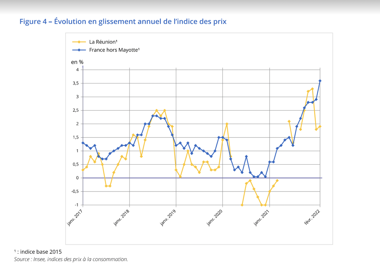Les prix à la consommation augmentent de 0,1 % en février 2022 à La Réunion.