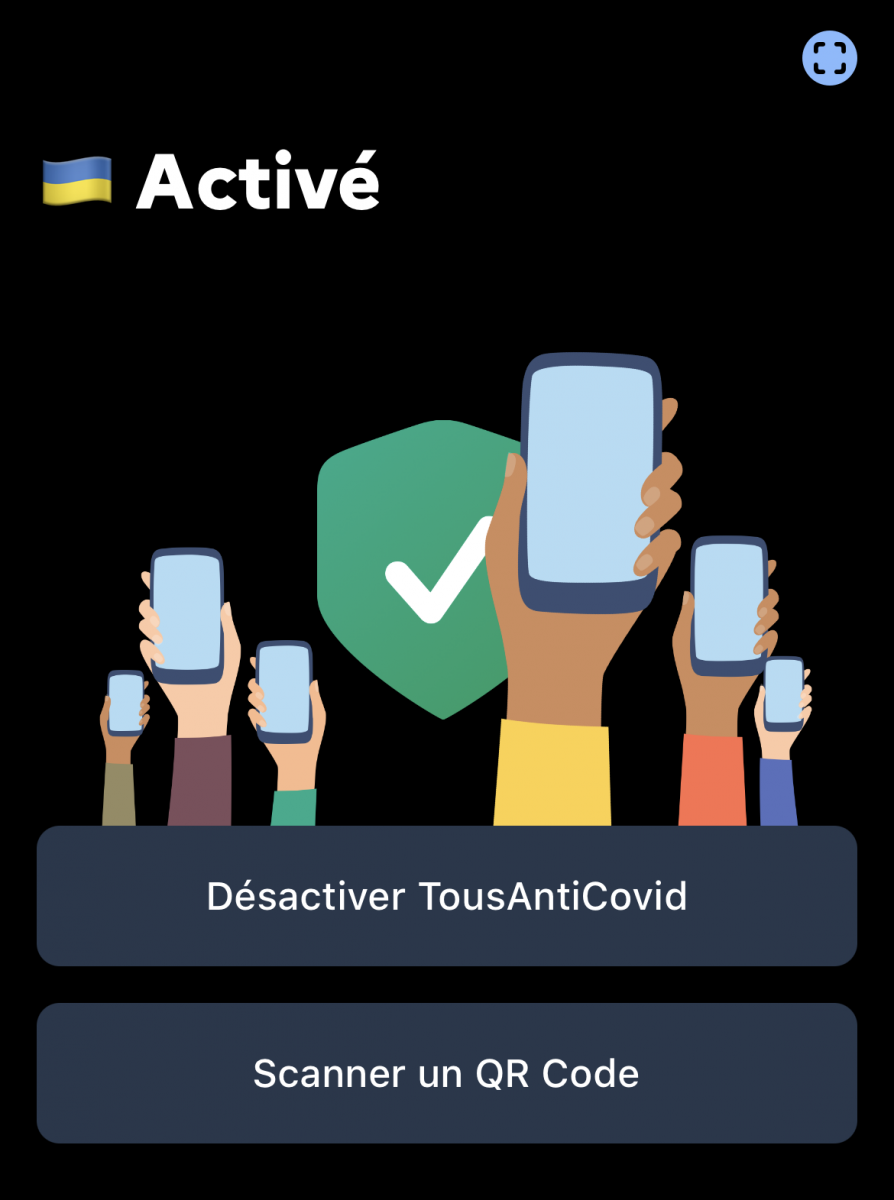 Le drapeau ukrainien affiché sur l'application TousAntiCovid