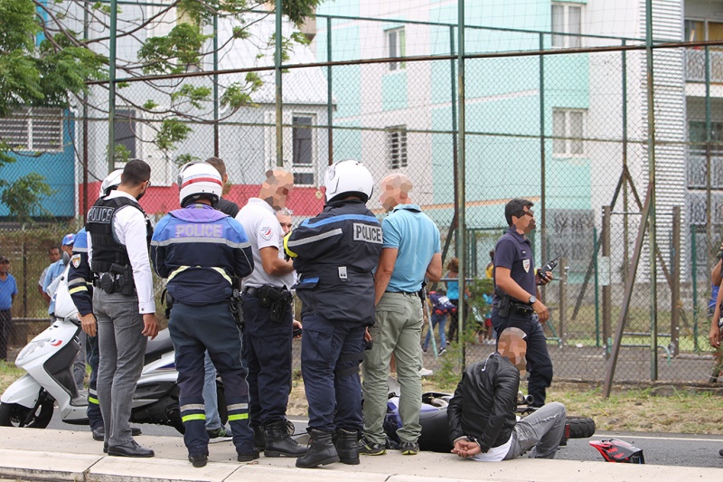 D’après nos confrères de Clicanoo, le motard aurait fait demi-tour à contre-sens sur la voie de circulation avant de terminer sa course dans une voiture banalisée de police qui se trouvait en tête de cortège.