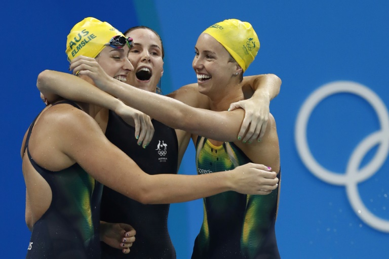 Samedi toujors, , l'Australie des soeurs Campbell a conservé le titre olympique du relais 4x100 m nage libre en établissant un nouveau record du monde en 3 min 30 sec 65, dans le bassin de Rio.