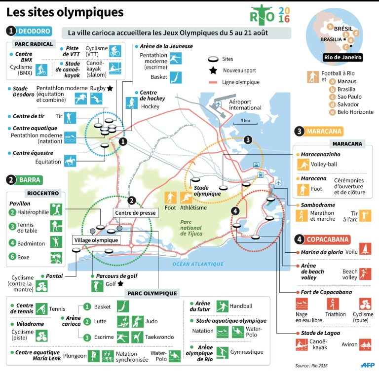 Les projecteurs sont braqués sur la capitale Brasilia. Et c'est dans l'indifférence générale que des milliers d'ouvriers s'affairent à Rio aux ultimes préparatifs des premier jeux Olympiques de l'histoire en Amérique du Sud. Car le séisme politique qui secoue le Brésil a relégué au second plan les inquiétudes sur l'achèvement des travaux du métro, la menace du virus Zika ou la pollution de la baie carte postale de Rio.