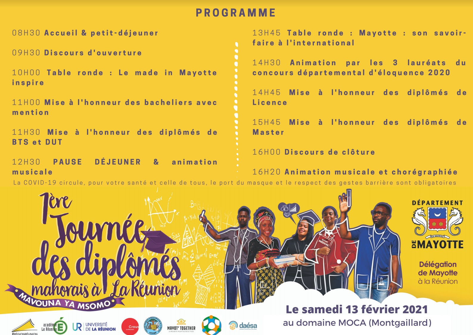 La journée se déroulera en présence des seuls diplômés et officiels. Toutefois, les familles et proches des jeunes, et toutes les personnes intéressées, pourront suivre la cérémonie en direct sur les pages Facebook du Département de Mayotte, de la DMR et de la DMP.