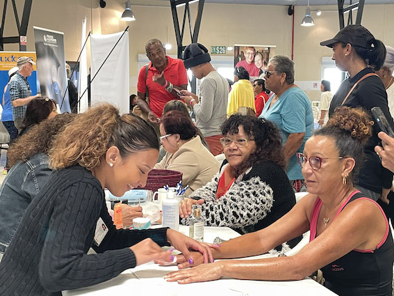 Au village « Savoir faire péi », place à l’artisanat et à l’économie solidaire à travers les ateliers de choca, de tabouret paillé et d’autres articles faits-main du Tampon et d’ailleurs. Loin de l’ambiance festive et musicale, le village « Bien-être et détente » portait bien son nom.