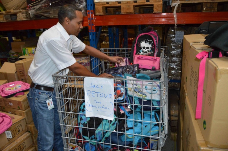 L'opération "cartable solidaire" a eu lieu jusqu'au 9 août 2015 dans tous les magasins Jumbo de l'île. Le principe : faire don de son ancien cartable pour aider les familles en difficulté. En échange d'un cartable en bon état déposé en magasin, les clients sont repartis avec un bon d'achat à valoir dans les rayons maroquinerie et papeterie. Les cartables/sac à dos ont ensuite été collectés par Emmaüs auprès de chaque magasin. (photo D.R.)