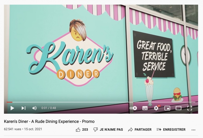 En Australie, la chaîne Karen’s Diner fait tout l’inverse. "Nourriture délicieuse, serveurs exécrables" la devise en dit long. Le nom met d’ailleurs sur la piste. On y reviendra. Le concept atypique fait parler de lui ses réseaux sociaux. Un coup de pub gratuit et qui touche de nombreuses personnes. Certaines vidéos ont déjà été vues plus d'un millions de fois. Un vrai coup de génie.