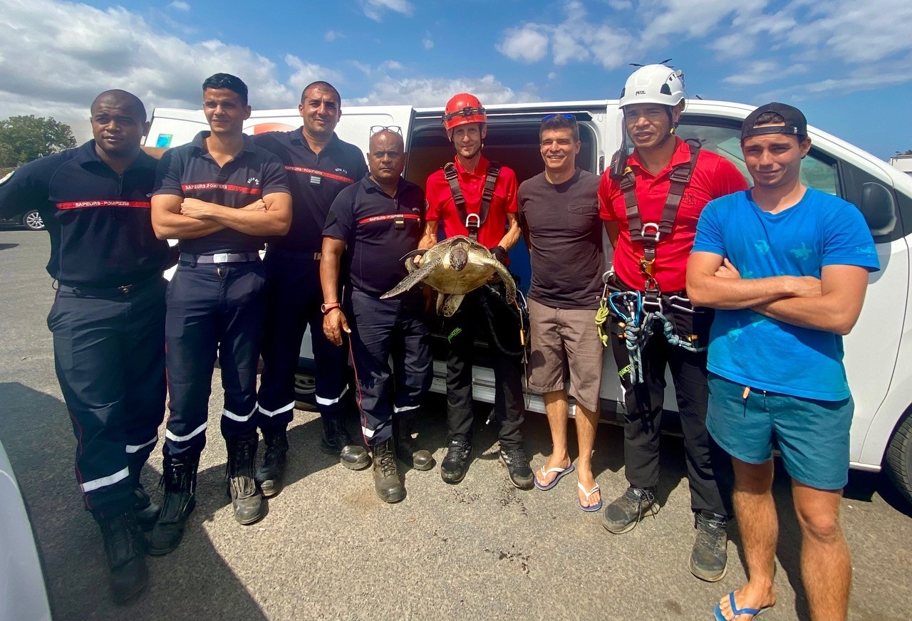 L’équipe de Kélonia remercie chaleureusement Samuel, c’est lui qui a donné l’alerte et qui a permis la mobilisation du centre de soins, des pompiers de Saint-Pierre, sous le commandement du Capitaine Bruno Rivière, ainsi que l'équipe du GRIMP (Groupe de Reconnaissance et d’Intervention en Milieu Périlleux) sous les ordres du Sergent-Chef Fabien Reboul.