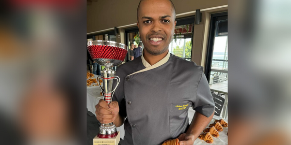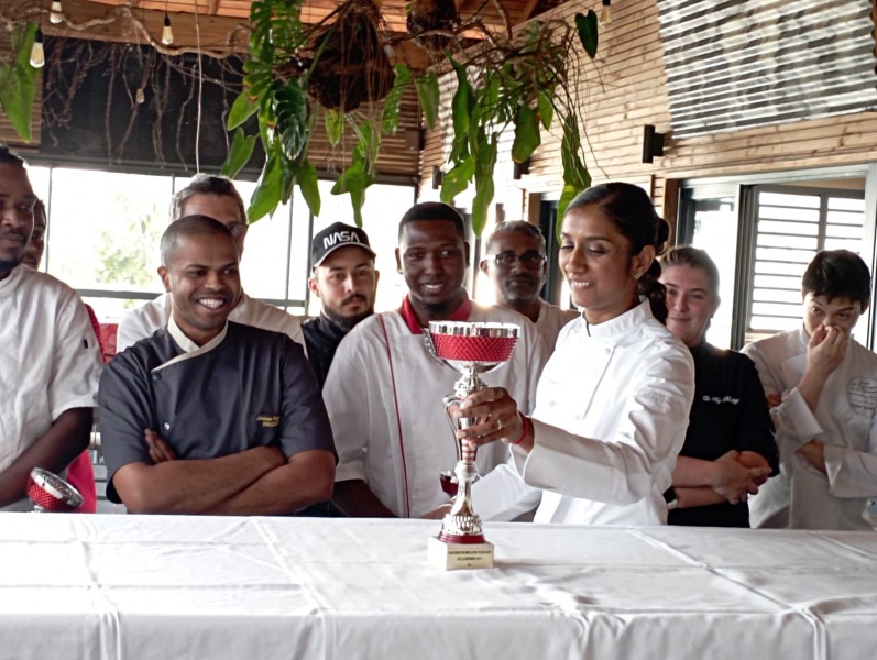 Ce jeudi 1er septembre 2022 s'est tenu le concours du meilleur croissant beurre de La Réunion. Kévin Nampota, de la boulangerie Boudevin à Saint-Louis remporte le premier prix. Dix concurrents, de l'est au sud en passant par le nord et l'ouest, ont participé à cette compétition. Le Réunionnais portera nos couleurs à l'occasion du concours national du meilleur croissant qui va se tenir à Versailles du 24 au 26 octobre 2022. La cheffe Kelly Rangama lui a remis le prix. (Photo : Boulangerie Réunion)