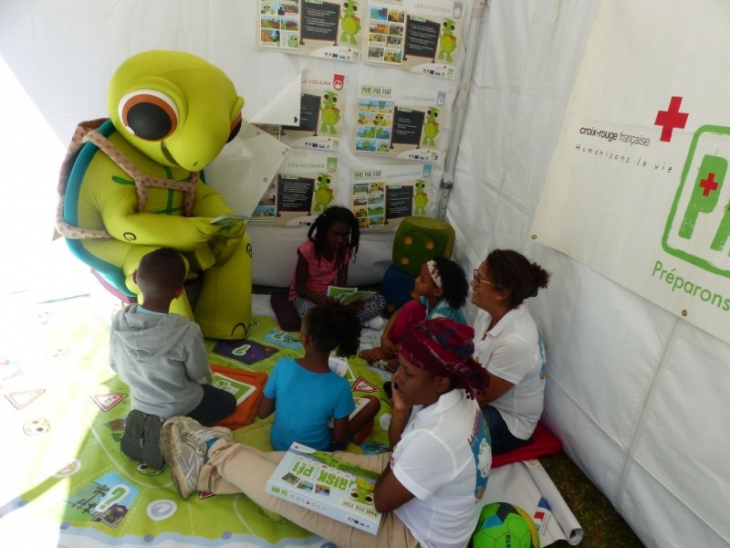 - Le stand d’animations du projet Paré pas Paré, incarné par la tortue Timoun, propose une série d’activités ludo-pédagogiques (Jeu plateau Risk Péi, jeu 7 familles, Conte...) permettant à tout âge d’acquérir des connaissances sur les 7 aléas naturels présents à La Réunion ainsi que les consignes de sécurité à suivre avant, pendant et après une catastrophe.
