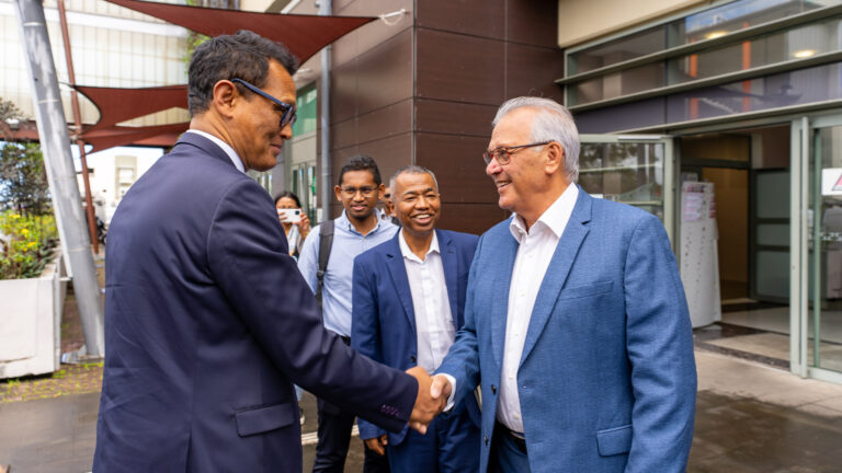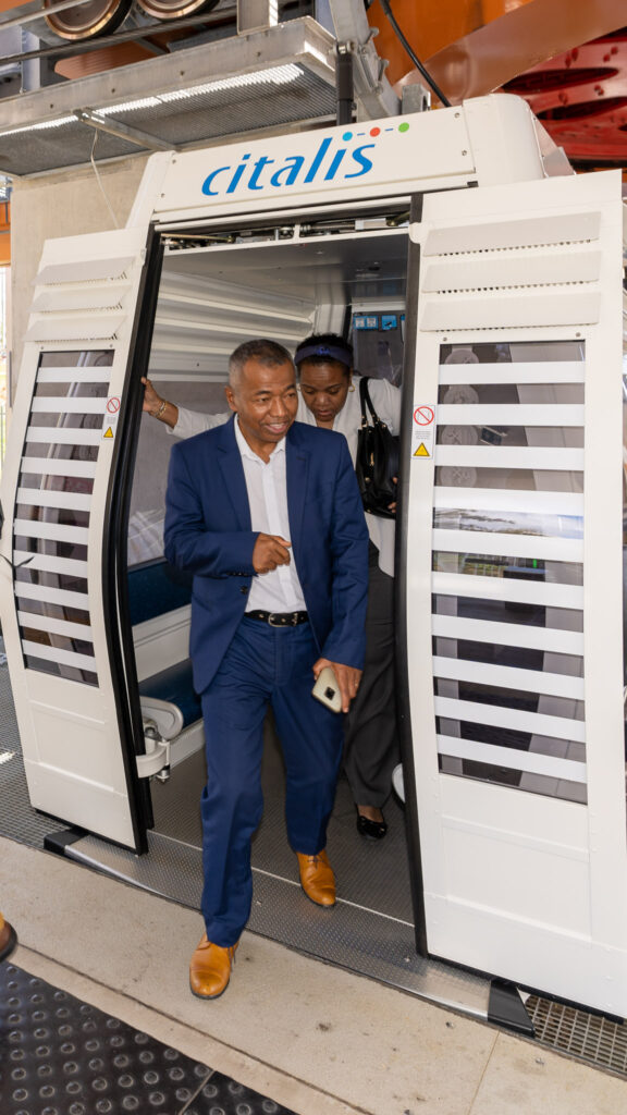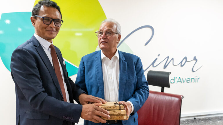 Vendredi 23 septembre 2022, Gérard Andriamanohisoa, secrétaire d’État chargé des nouvelles villes et de l’habitat auprès de la présidence de Madagascar, a été reçu par Maurice Gironcel, accompagné de sa délégation pour une visite des équipements de la Cinor. Au menu de cette visite : le téléphérique Papang, mais aussi de la station d’épuration du grand Prado et la Cité des Arts. (Photos : Cinor)