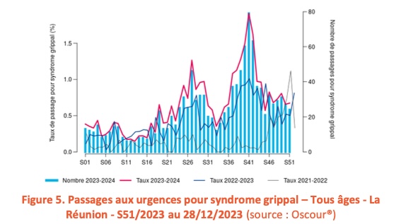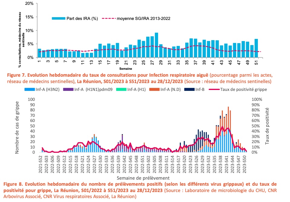 Si la baisse du taux de positivité se confirme en S52, La Réunion sortira de sa phase de post-épidémie de grippe.