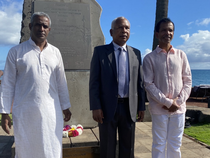Pour clôturer cette cérémonie, un dépôt de gerbe a été effectué sur le mémorial des engagés Indiens au Barachois, à Saint-Denis. Plusieurs membres de la communauté et des historiens ont fait le déplacement à l'instar de Sully Govindin.