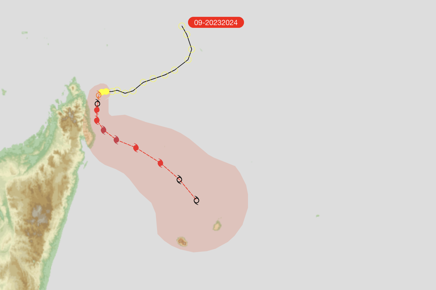 "Selon la trajectoire actuellement privilégiée, mais soumise à une incertitude significative, le coeur intense du phénomène pourrait rester à l'écart de Madagascar" précise Météo France.