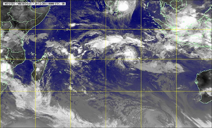 La perturbation tropicale enregistrée ce mercredi 28 décembre par les services de Météo France est devenue dépression tropicale au cours de la nuit. A 16 heures ce jeudi 29 décembre 2011, elle se trouvait à 3145 km à l'est-nord-est des côtes réunionnaises. Le système dépressionnaire se situait plus précisément par 12.9 Sud et 84.2 Est, et se déplace vers l'Ouest à la vitesse de 20 km/h. Il n'y a toujours pas d'alerte en cours à La Réunion et aucune menace cyclonique n'est envisagée pour les prochaines 72 heures.