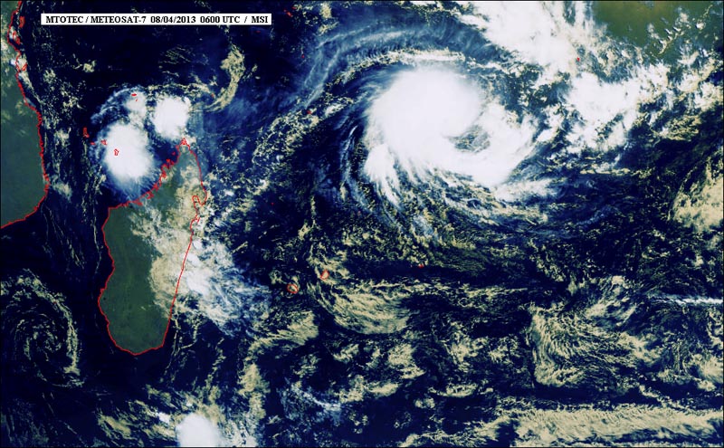 À 10 heures ce lundi 8 avril 2013, la dépression tropicale, suivie par Météo France, était à 1 475 km au nord-est de La Réunion. Elle se situait par les points 11.2 Sud et 65.1 Est. Elle se déplace vers l'ouest à la vitesse de 22 km/h. Météo France précise que ce système n'a aucune influence sur l'île et qu'aucune menace cyclonique n'est à craindre pour les prochaines 72 heures.