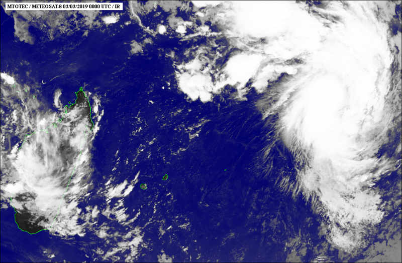 Position le 03 mars à 16 heures locales Réunion: 15.5 Sud / 73.6 Est.