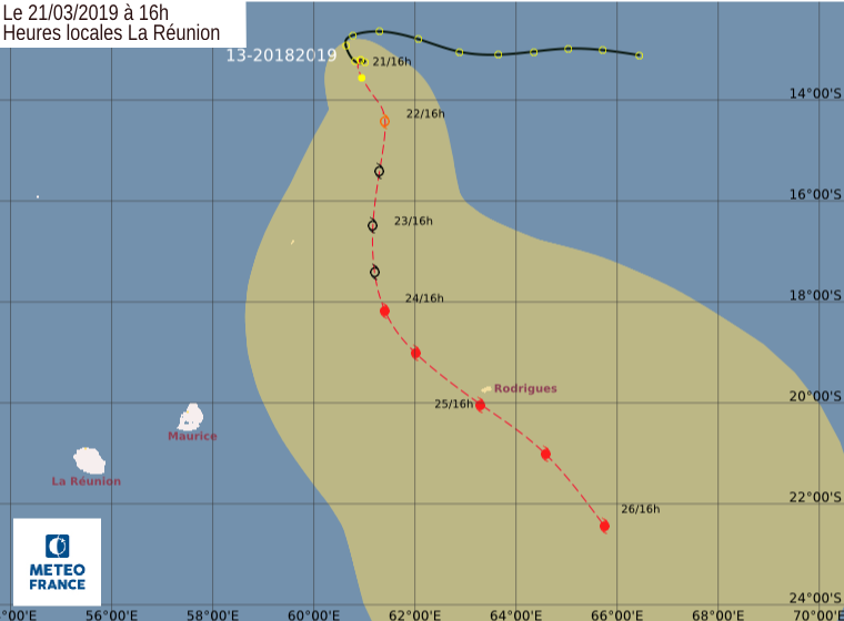 Position le 21 mars à 16 heures locales Réunion: 13.2 Sud / 60.9 Est.