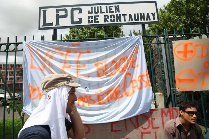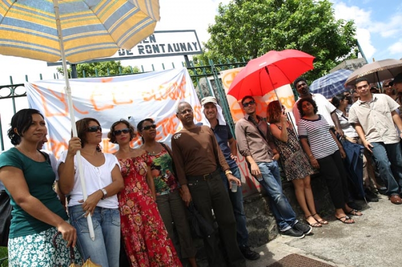 Quatre lycées et un collège sont toujours bloqués ce jeudi 17 février 2011 tandis qu'environ 50 enseignants étaient rassemblés ce matin devant le lycée Rontaunay à Saint-Denis.