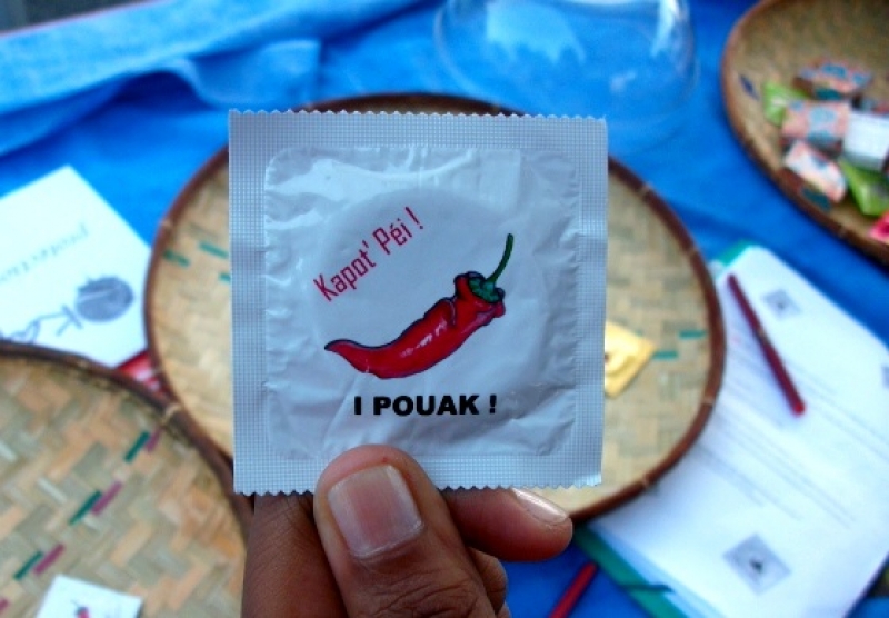 Ce samedi 31 mars 2012, lors de l'ouverture du festival Big Up 974, un stand de sensibilisation sur les moyens de contraception et de dépistage des infections sexuellement transmissibles a pris place dans la rue de Paris à Saint-Denis. L'occasion pour trois étudiants en licence professionnelle ATC (activités et techniques de communication) de présenter leur projet, intitulé Kapot'Péi, et de faire découvrir aux passants deux nouveaux modèles de préservatifs créés aux couleurs de La Réunion : "Chauf'a mwin !" et "I pouak !". Le projet a été réalisé en partenariat avec l'association Rive.