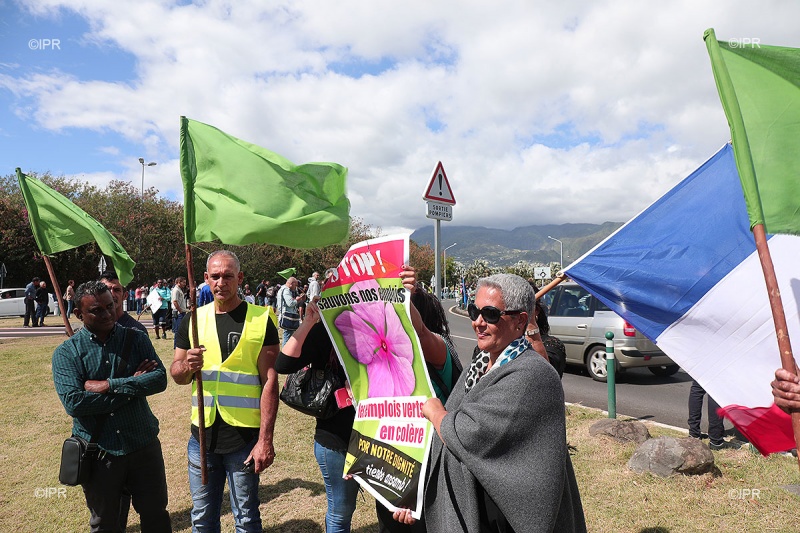 • 09h15 - La plateforme des associations d'emploi Verts attend de pied ferme La ministre de l'outre-mer Annick Girardin. Ses membres se positionnent de chaque côté des trottoirs face à l'aéroport Roland-Garros Ils forment une chaîne humaine. Les organisateurs attendent 800 personnes Objectif : réclamer le maintien de l'enveloppe des contrats aidés