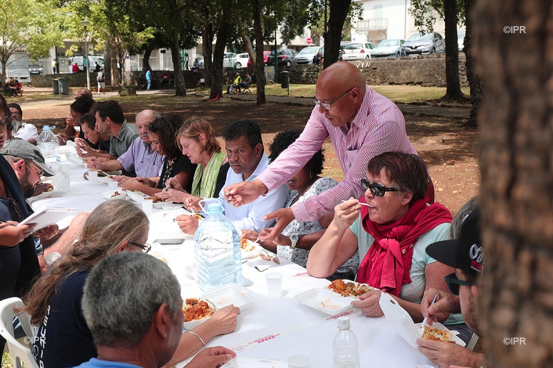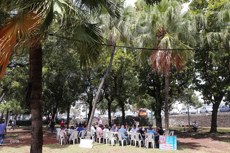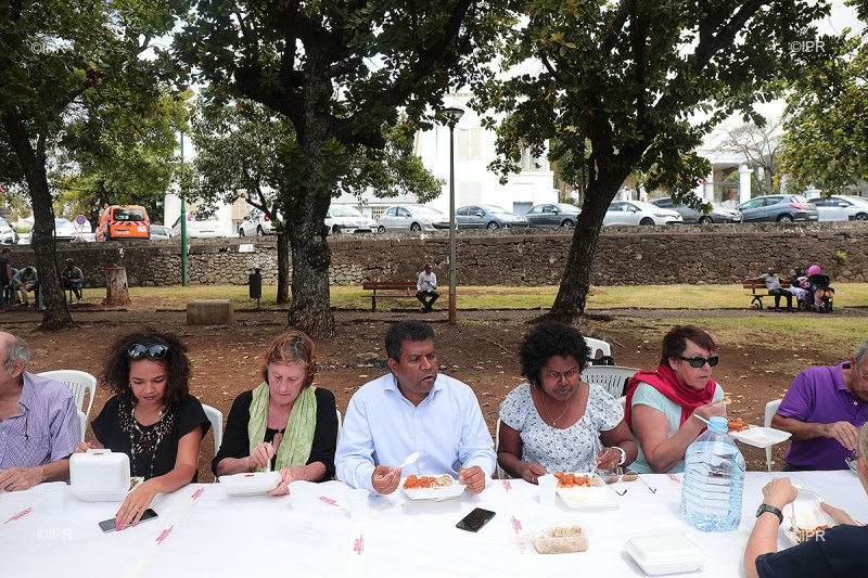 • 12h45 - Le député Insoumis Jean-Hugues Ratenon arrive dans les jardins de la préfecture. Il n'ira pas déjeuner avec la ministre et préfère manger une barquette républicaine avec une vingtaine de personnes. Suivez notre live