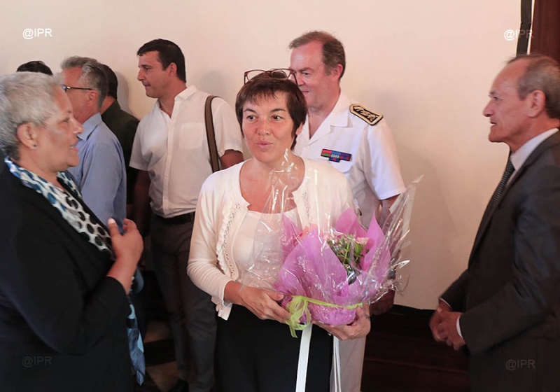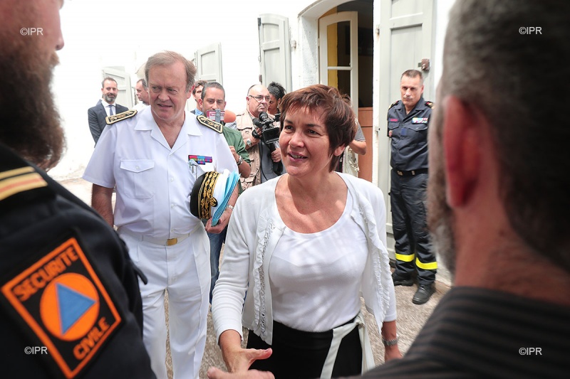 • 11h00 - Dans la cour de la préfecture Annick Girardin salue les membres du centre opérationnel qui regroupe notamment les différents services de sécurité et de secours