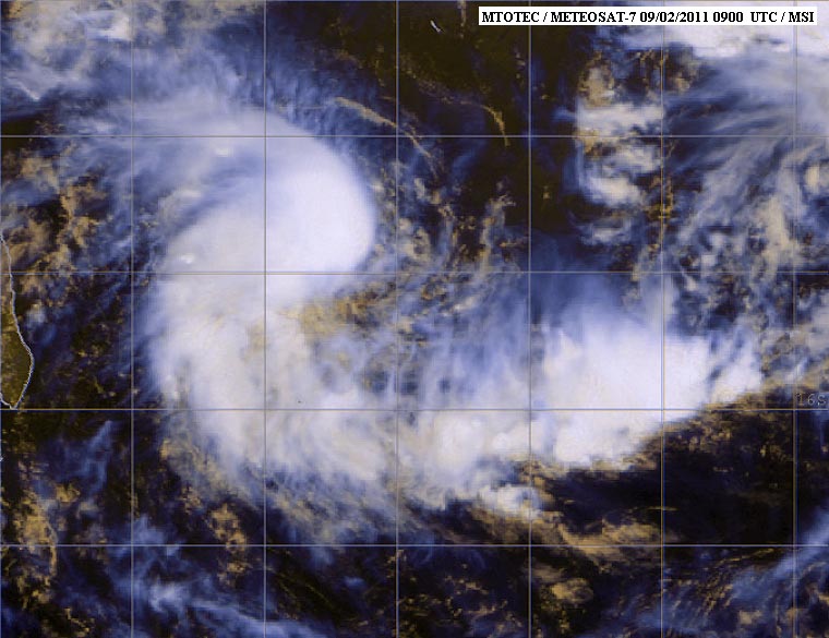 La perturbation tropicale suivie par les services de Météo France est devenue une dépression tropicale ce mercredi 9 février 2011 en fin de journée. Le système se situait à 16 heures à 785 km au Nord de La Réunion. Il poursuit sa route vers l'Ouest-Sud-Ouest. Une intensification est envisagée dans les prochains jours. Selon Météo France, il pourrait atteindre le stade de cyclone tropical dans les 72 heures. Aucune alerte n'est en cours pour l'instant.